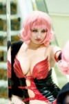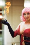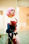 The PVC corset was loosely patterned by me using an old corset pattern I had laying around and altered with deep red taffeta lining, mostly for show rather than real functionality. The bra cups were made using cut up bra forms with push-up inserts, covered in craft foam spray painted with glitter paint, which I will never use again with how inconsistent it applied. Arm and leg buckles were patterned from red PVC, boots pre-owned, and finished with a serged chiffon cape. Wig was a lucky find on Ebay that required only bangs to be cut in. I opted out of her thorn choker for comfort and functionality.
