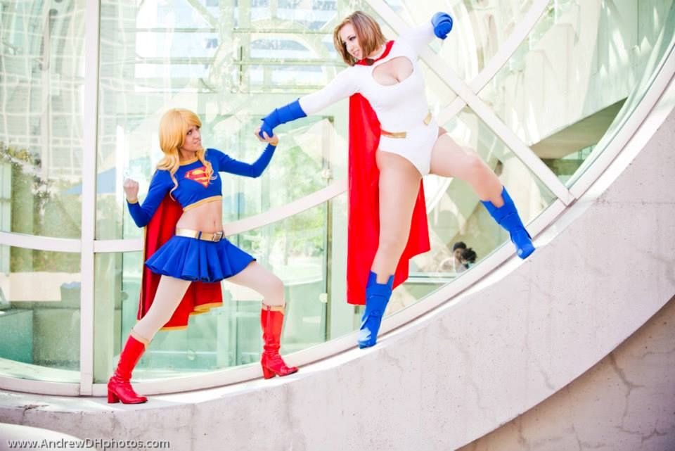 Kara Zor-L has been on my to-do list for many years, but I always somehow hesitated to make her, be it the design (it’s more intimidating craftsmanship than you’d expect!) or the event, but my first trip to San Diego Comic Con felt like the right place, and when I saw her redesign in New 52 with the battle armor, it screamed to be made. Functionality with a twist on a classic design, who doesn’t love that! Plus, all the seams and lines on the new leotard are a keen breakaway from her vertical seams with a flattering design in mind. I simply could not be happy with any wig I styled for this outfit, so I ended up dyeing my own hair a few shades lighter for it because it had the right cut at the time. In my mind, it’s still too dark for Kara, but was a more natural look. It was super fun to take photos with Steff as adorable Super Girl!