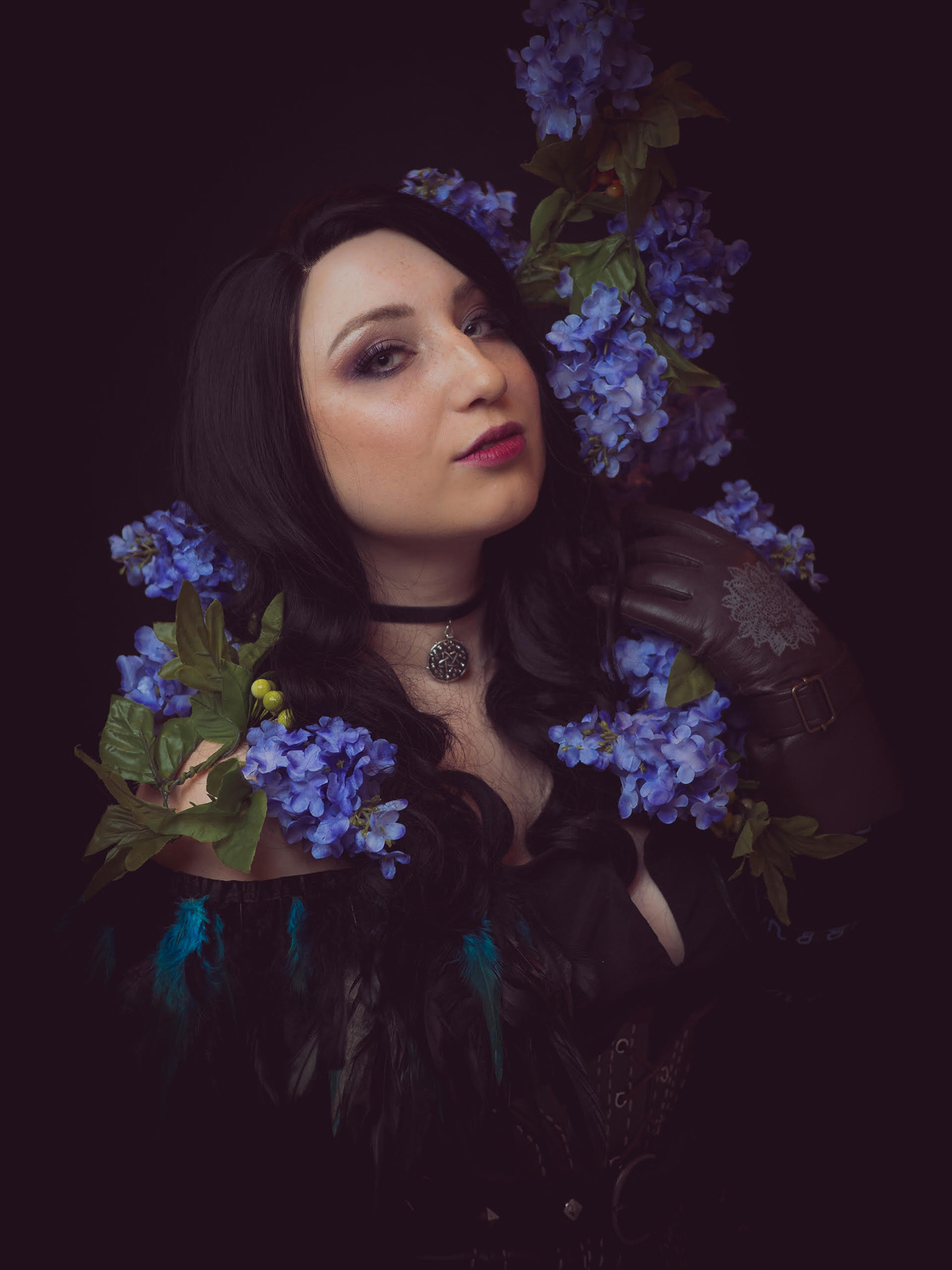 After being recommended repeatedly to play the Witcher games, I found both the game’s main love interests holding very appealing characteristics and personalities, even more so after reading the original novels. Yennefer has a very dark color palette that I thought would be fun to show with a variety of textures and textiles .